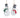 Tin snowman ornament, distressed white with red and green scarves and gold jingle bell buttons. Both are wearing a black hat with galvanized snowflakes on them & hang from a twine hanger.