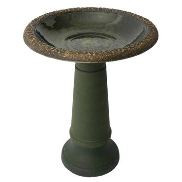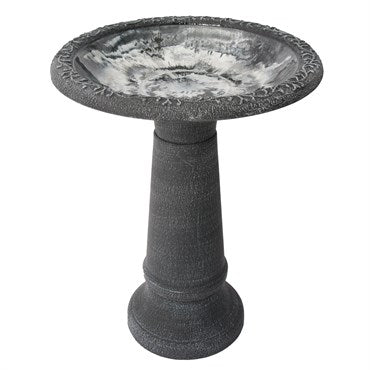Algreen's Acerra Birdbath is a decorative outdoor accent constructed from a composite blend of stone and recycled resin to provide durability with a refined textured appearance. The base and bowl rim are hand painted to highlight surface detail, while the bowl features a glossy, pottery-like glazed finish with a subtle marbled effect. Designed to be weather and UV resistant, this birdbath offers a robust yet lightweight structure that is easy to position and maintain in a variety of landscape settings.